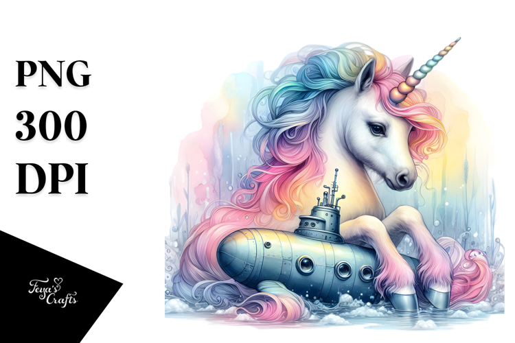 Colorful Baby Unicorn with Submarine, PNG example image 1
