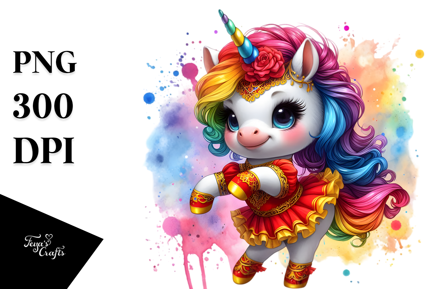 Colorful Baby Unicorn in Redowa Dancer's Outfit, PNG example image 1