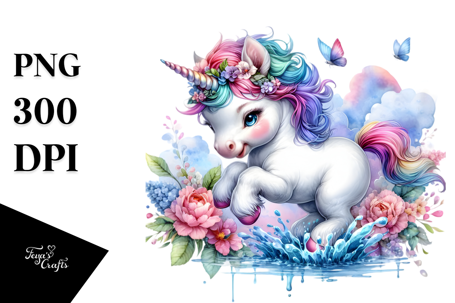 Similar Design Products to Colorful Baby Unicorn Splashing in Puddle, PNG