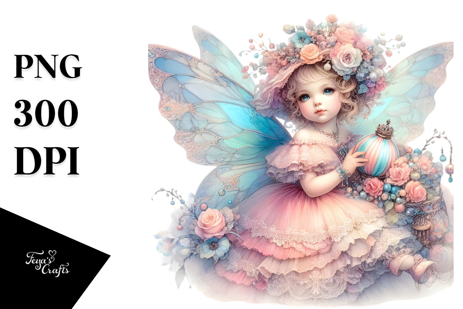 Similar Design Products to Baby Fairy at Victorian Ball, Watercolor PNG
