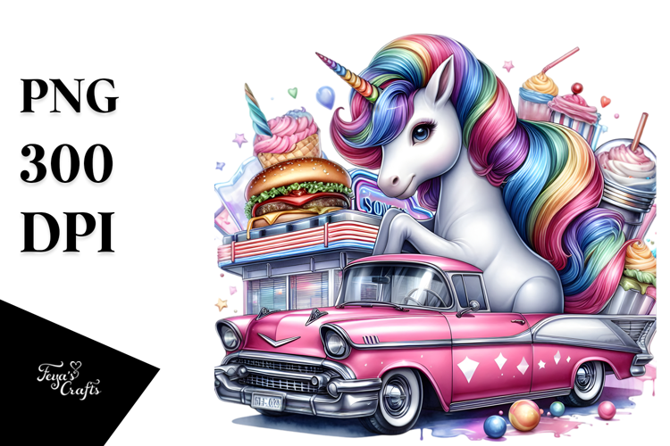 Similar Design Products to colorful Baby Unicorn with 50s Diner