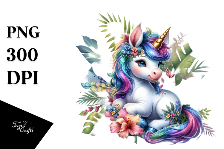 colorful Baby Unicorn with Jungle Background example image 1