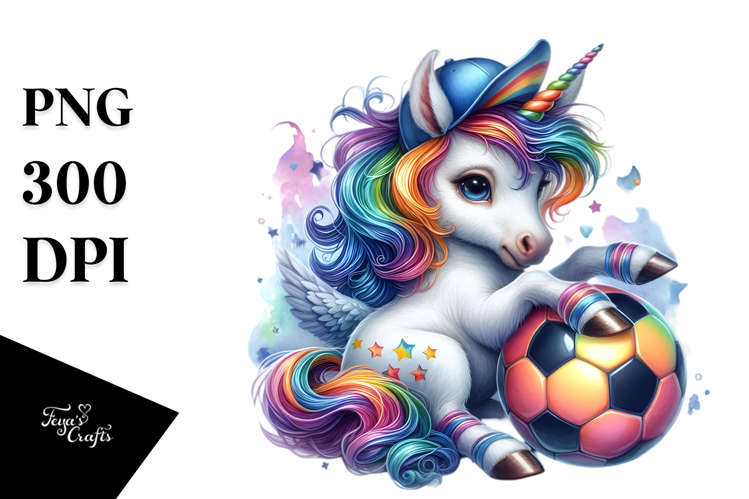 colorful Baby Unicorn with Soccer Ball