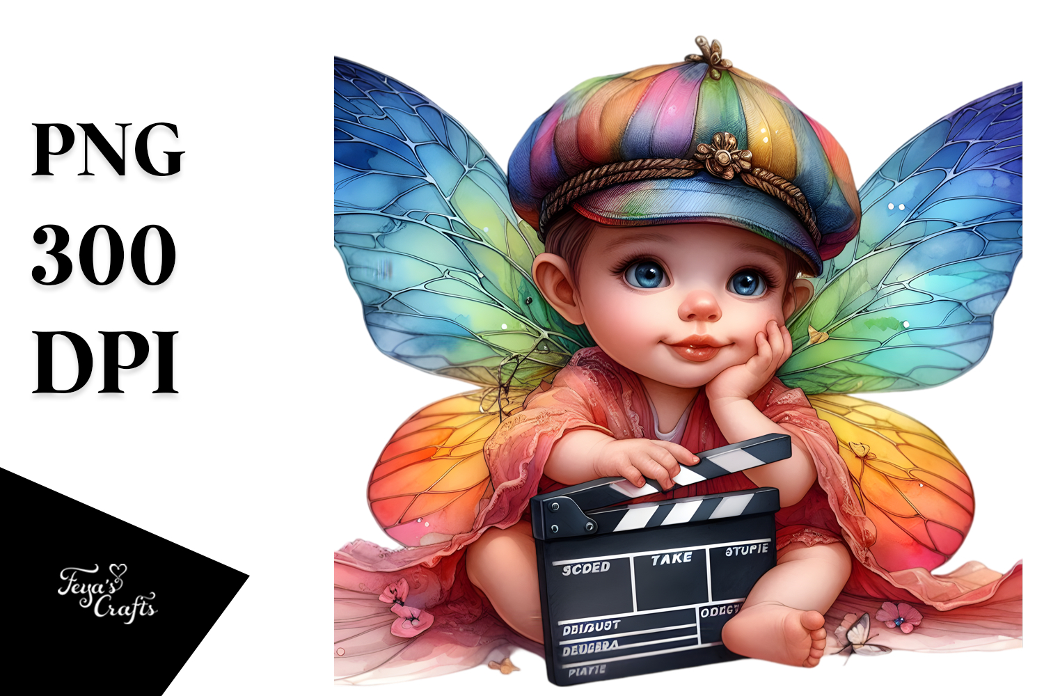 Colorful Baby Fairy with Director's Cap PNG example image 1