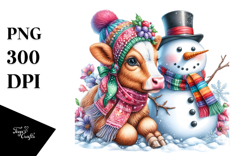 Similar Design Products to cute Baby Cow in Snowman PNG