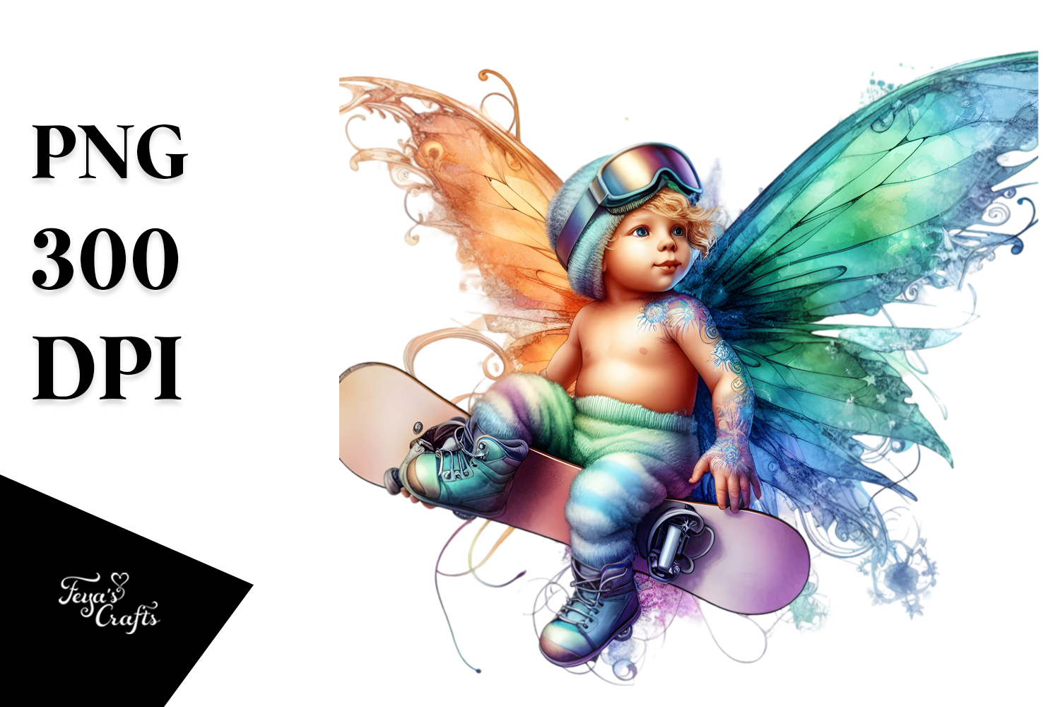 Colorful Baby Fairy with Snowboard PNG example image 1