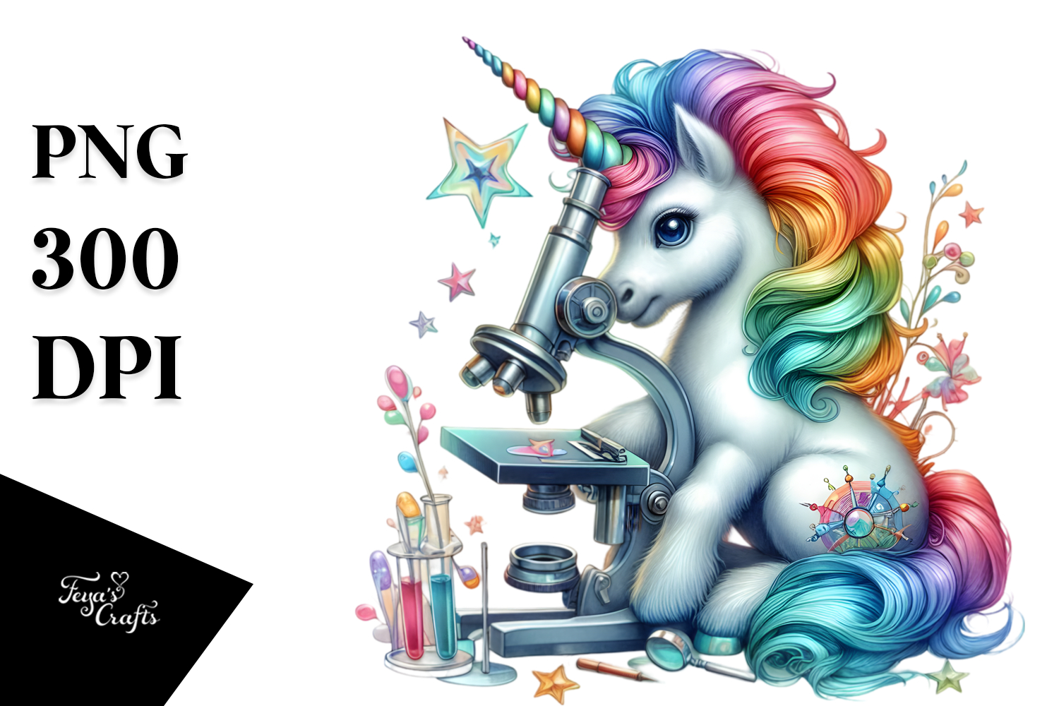 Colorful Baby Unicorn with Microscope PNG example image 1