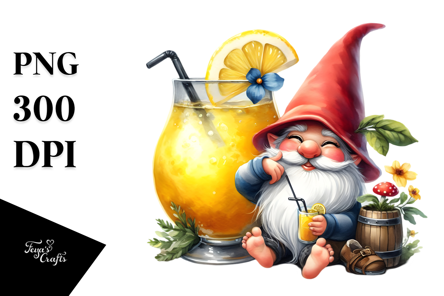 Sticker Whimsical Summer Flower Lemon Png Cocktail Sublimation Gnome