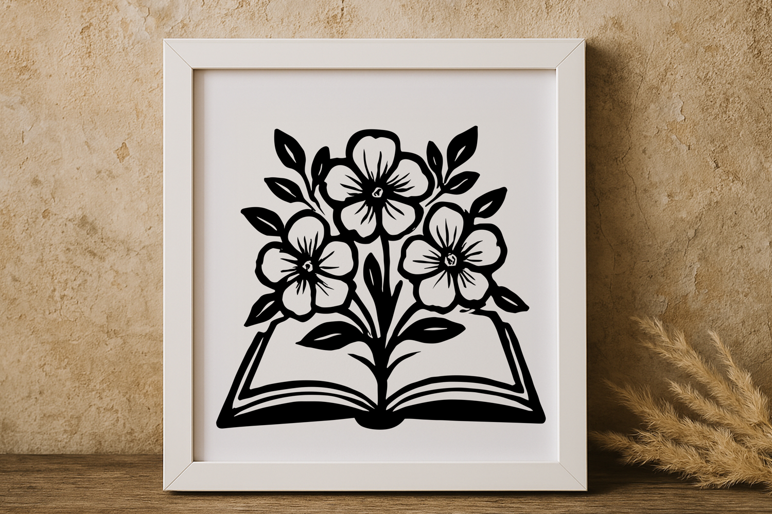 Combine your love for literature and the beauty of nature with our unique Floral Book SVG Design! This evocative digital graphic features an open book from which three elegant roses bloom, complete with leaves and stems. It's the perfect design for avid readers, librarians, teachers, writers, and anyone who appreciates the magic found within pages and the beauty of growth.