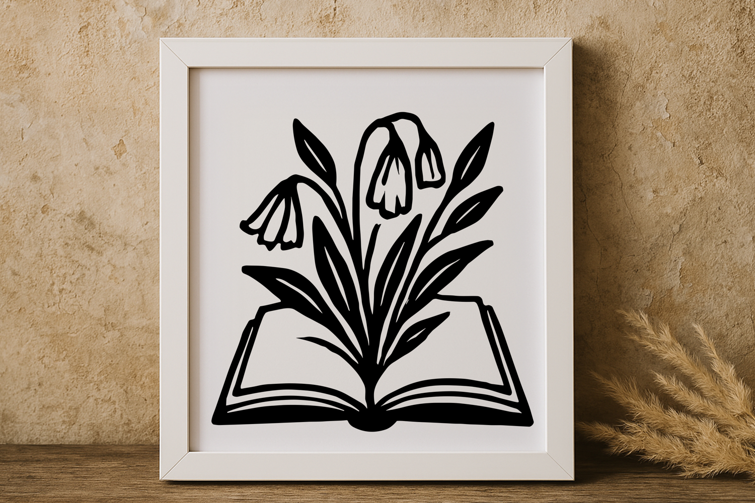 Combine your love for literature and the beauty of nature with our unique Floral Book SVG Design! This evocative digital graphic features an open book from which three elegant roses bloom, complete with leaves and stems. It's the perfect design for avid readers, librarians, teachers, writers, and anyone who appreciates the magic found within pages and the beauty of growth.
