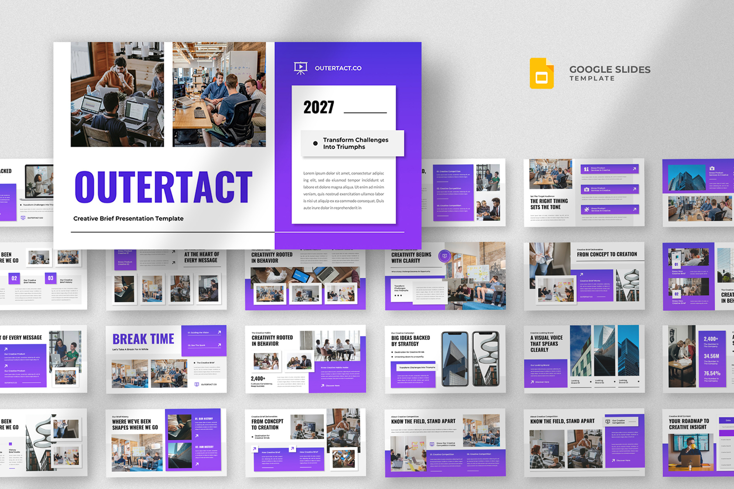 This template is suitable for industries such as digital marketing, branding, advertising, media, startups, and business innovation teams. Whether used as a client-facing pitch deck or an internal planning tool, Outertact adapts easily to different creative workflows.