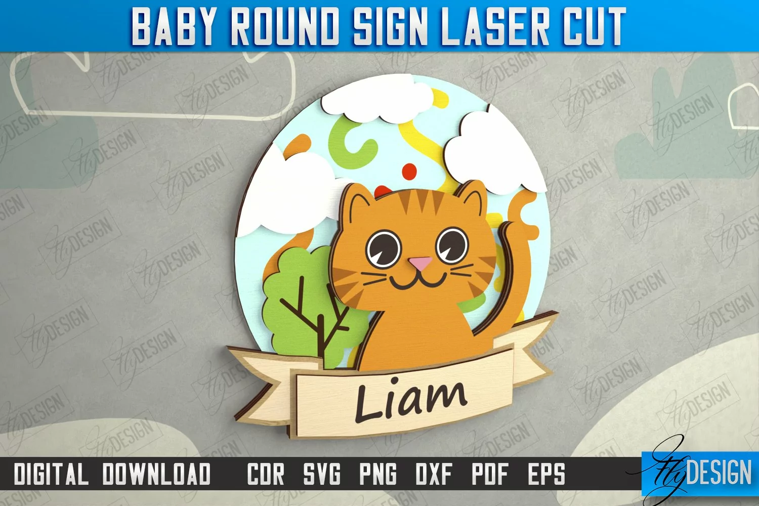Children's Room Sign | Door Round Sign | Personalized Nursery Sign | Cat Design | Signboard | CNC File