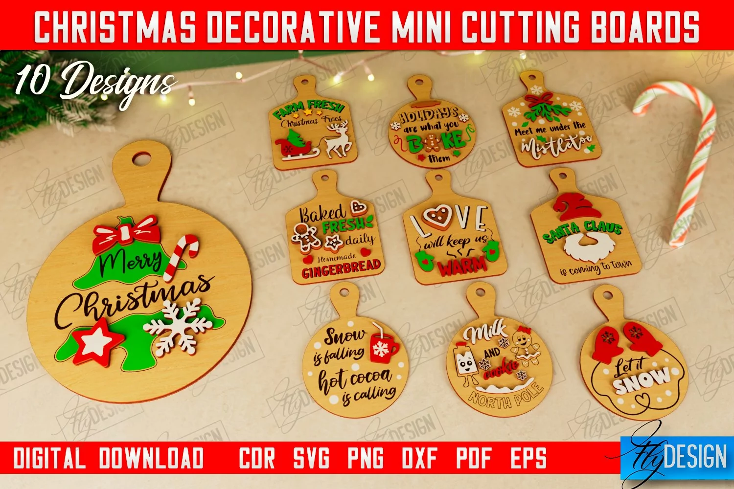Christmas Decorative Mini Cutting Boards Laser Cut Bundle | Cutting Boards Laser Cut Bundle | Wall Decor | Mini Cutting Boards | CNC File