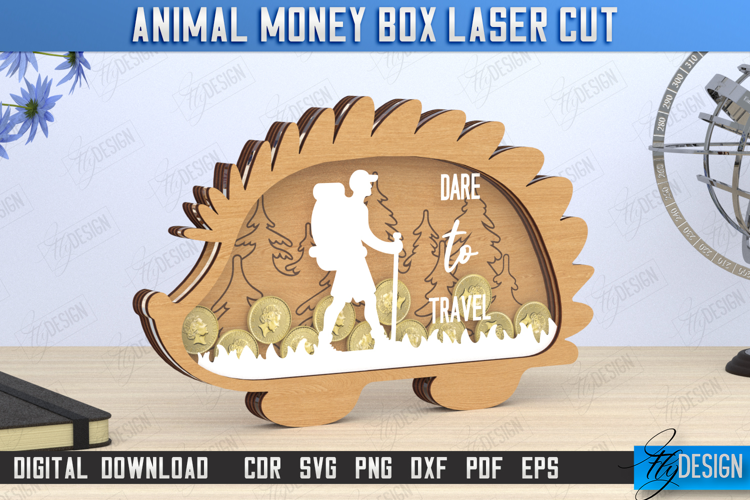 Similar Design Products to Piggy Bank Laser Cut | Hedgehog Shape | Money Box | Travel