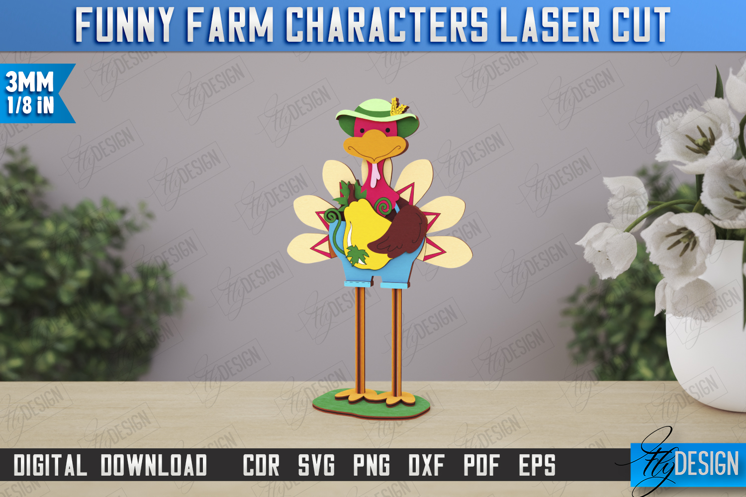 Funny Farm Characters Laser Cut | Farmhouse Design | Tabletop Statuette | CNC File