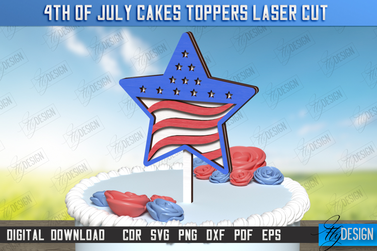 4th of July Cake Topper Laser Cut | Patriotic Sign | Independence Day Design | CNC File