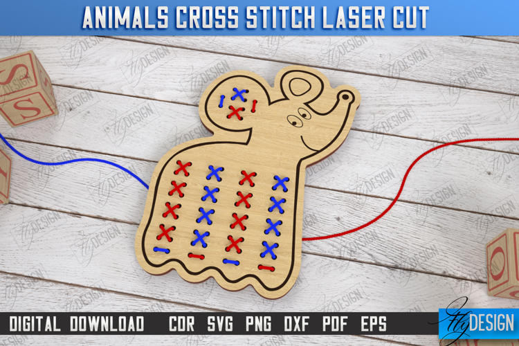 Cross Stitch Animals Laser Cut | Montessori Lacing | Developing Game | Educational Toy | CNC File