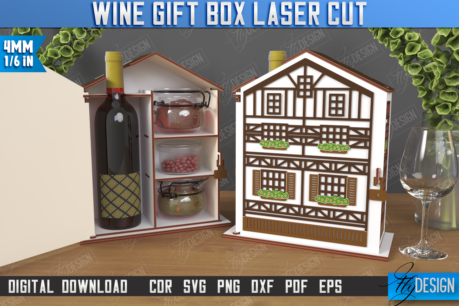 Digital File Holiday Gift Idea Wine House Champagne Box Wine Gift Box Mini Bar Xtool Wine Box Laser Cut Bottle Box Laser Cut Gifts Made Of Wood