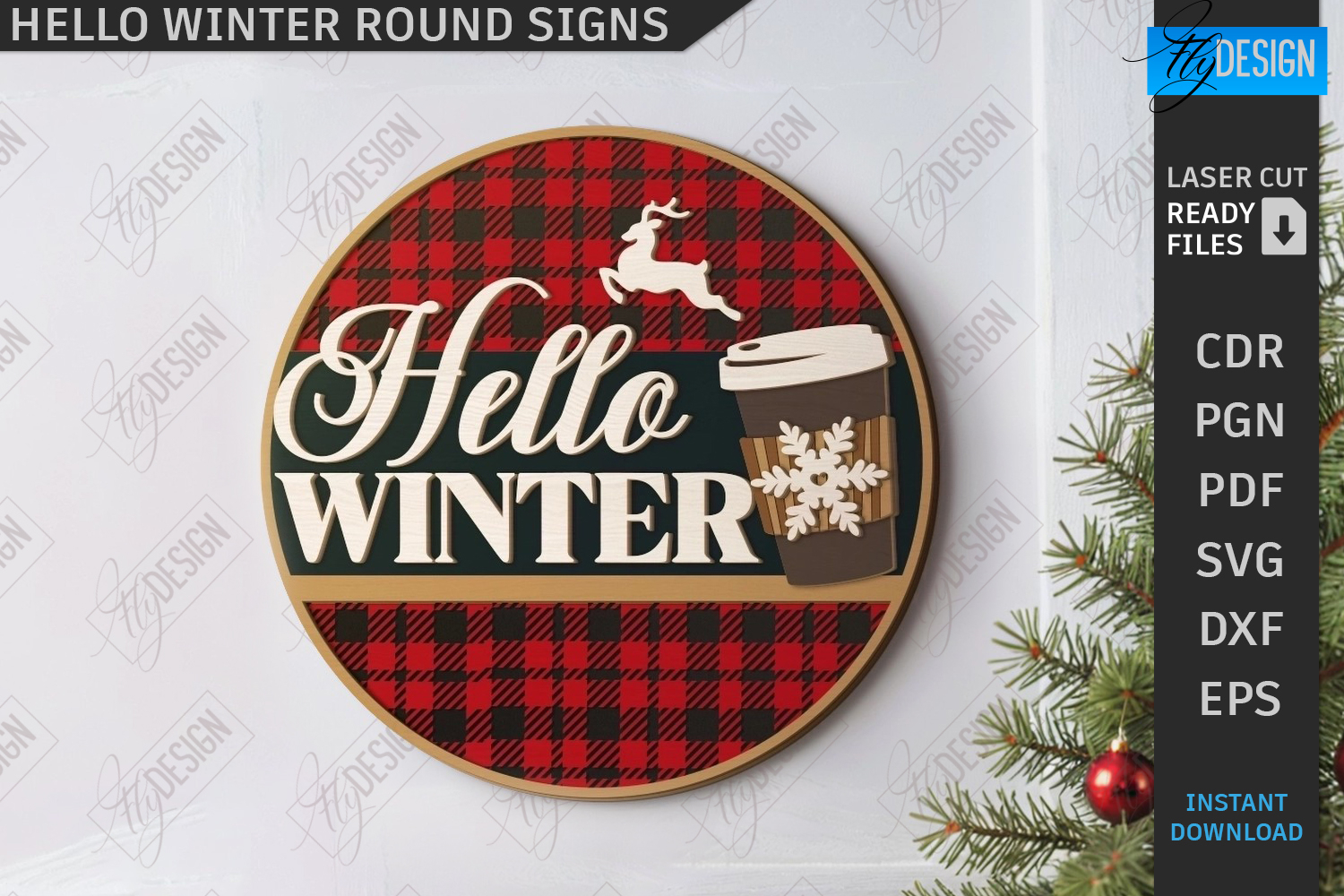 Hello Winter Round Sign Laser Cut | Winter Front Door Decor | Welcome Wall Sign | Wall Decor | Hello Winter SVG | CNC File