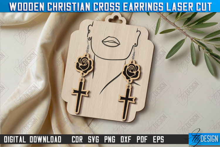 Christian Cross Earrings Laser Cut | Wooden Jewelry | Christian Accessories | Pendant Earrings | CNC File