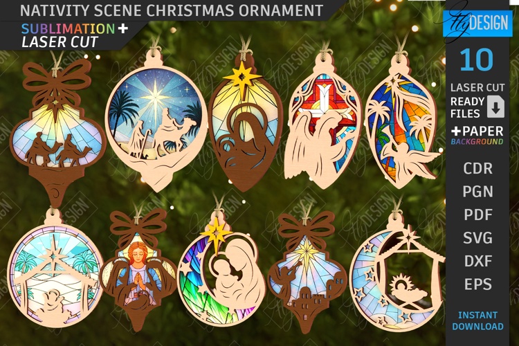 Nativity Scene Ornaments Laser Cut Bundle | Christmas Tree Toys | Xmas SVG | Christmas Ornaments | Christmas Eve | CNC File