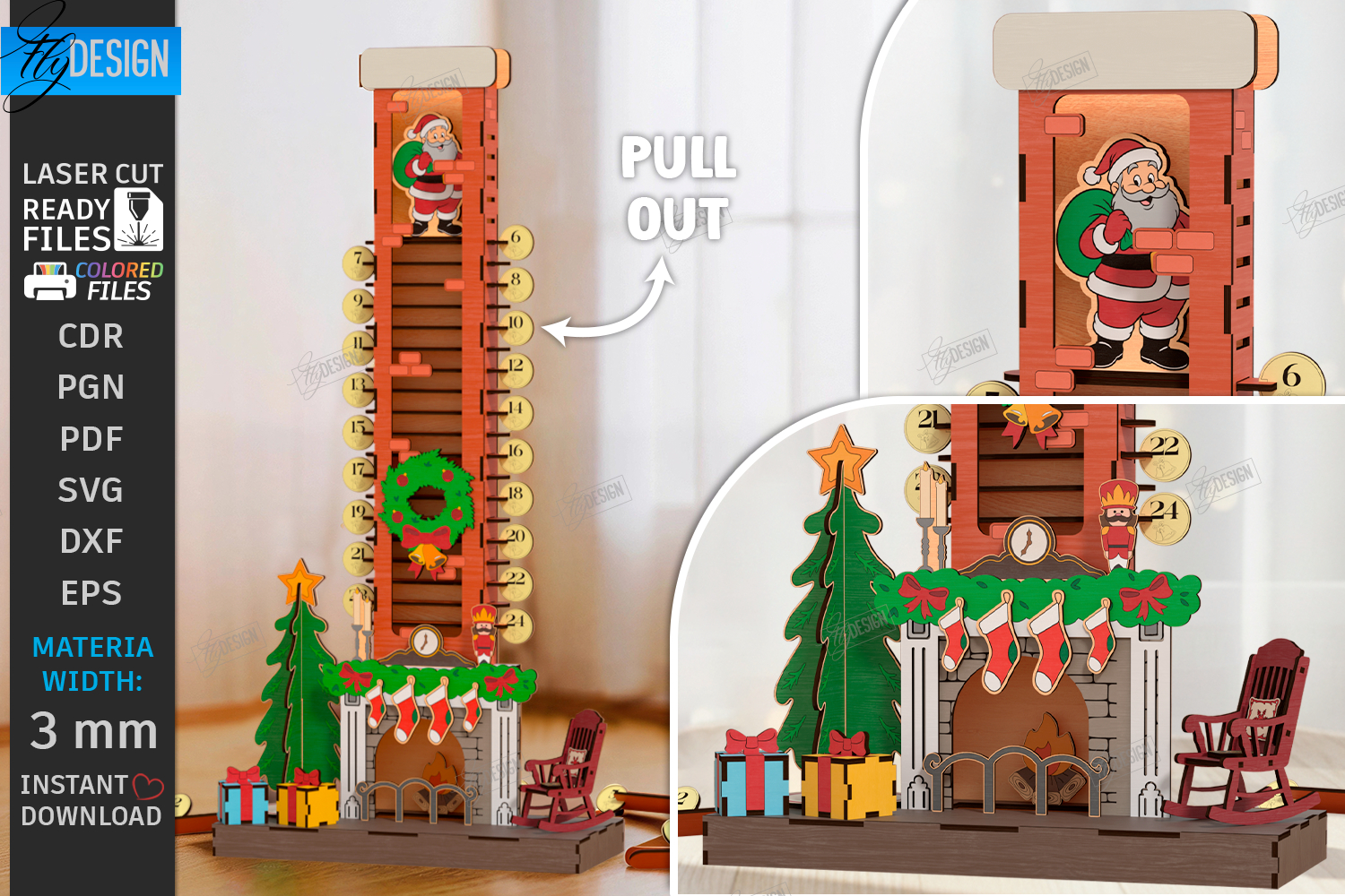 Similar Design Products to Christmas Fireplace Countdown Laser Cut, Advent Calendar SVG
