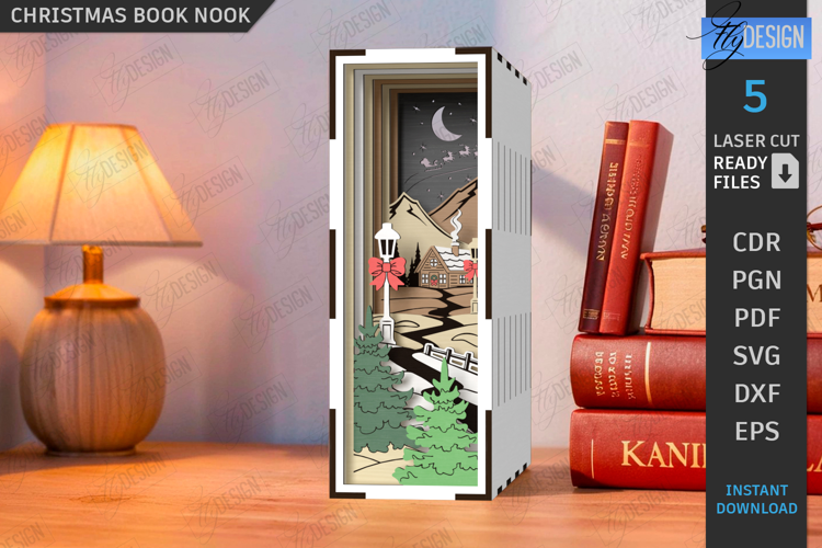 Christmas Book Nook Laser Cut | Book Holder | Accessories for Book Shelfs | Book Lovers | 3D Christmas Scene | Merry Christmas | Christmas Décor | Holidays Decorations | Christmas Night SVG | Winter Season | Xmas SVG | Christmas Eve | CNC File