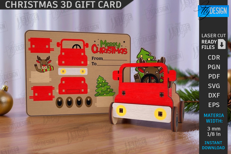 Christmas 3D Gift Card Laser Cut | Christmas Pop Up Card | Pop-Out Card | Greeting Card | 3D Christmas Ornament | Christmas Present | Winter Holidays | Christmas Eve | Family Christmas | Xmas SVG | Christmas Decorations | Christmas Gift Idea | Christmas Scene | Christmas Truck | CNC File
