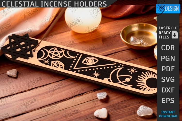 Celestial Incense Holder Laser Cut | 3D Incense Stick Holder | Wooden Incense Holders | Meditation | home décor | Hamsa | Glowforge file | Mystical Symbols SVG | CNC File