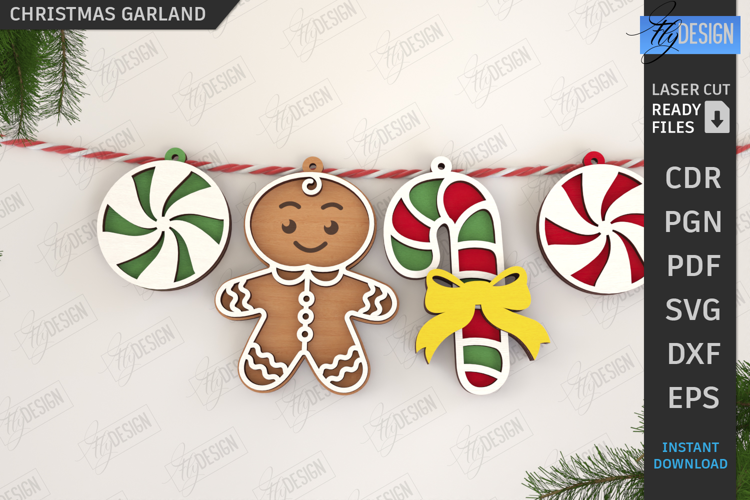 Christmas Garland Laser Cut | Christmas Banner | Christmas Wall Decorations | Christmas Ornament | Merry Christmas SVG | Home Décor | Holidays | Winter Decorations | Happy New Year | Wall Decor | Christmas Party | Christmas Eve | 3D Design | Gingerbread | Lollipops | CNC File