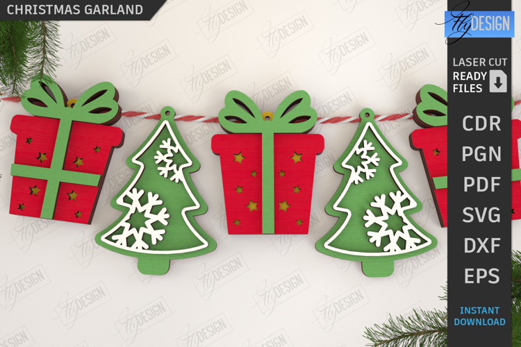 Christmas Garland Laser Cut | Christmas Banner | Christmas Wall Decorations | Christmas Ornament | Merry Christmas SVG | Home Décor | Holidays | Winter Decorations | Happy New Year | Wall Decor | Christmas Party | Christmas Eve | 3D Design | Christmas Tree Christmas Presents | CNC File