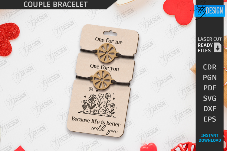 Couple Bracelet Laser Cut | Bracelet Charm | Doubles Bracelets | Accessories Design | Gift Idea | Friendship Bracelets | Kind Inscriptions SVG | Wooden Bracelets | Boho Bracelet | Cute Combo | Flowers SVG | CNC File