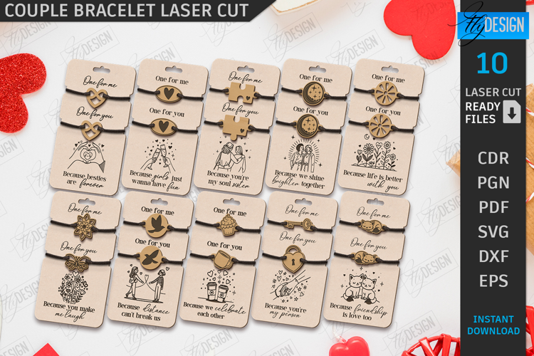 Couple Bracelets Laser Cut Bundle | Bracelet Charms | Doubles Bracelets | Accessories Design | Gift Idea | Friendship Bracelets | Kind Inscriptions SVG | Wooden Bracelets | Boho Bracelets | Cute Combo | Heart SVG | CNC Files