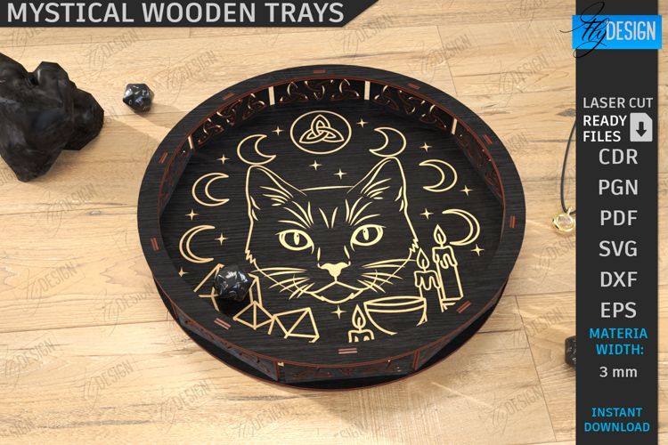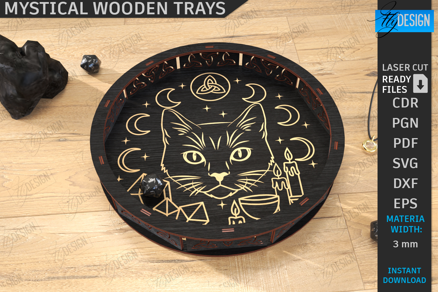Mystical Wooden Tray Laser Cut | Celestial Dice Tray | Mystical Symbol | Serving Tray Design | Home Décor | Laser Engraving | Organizer | Cat | Moon | CNC File