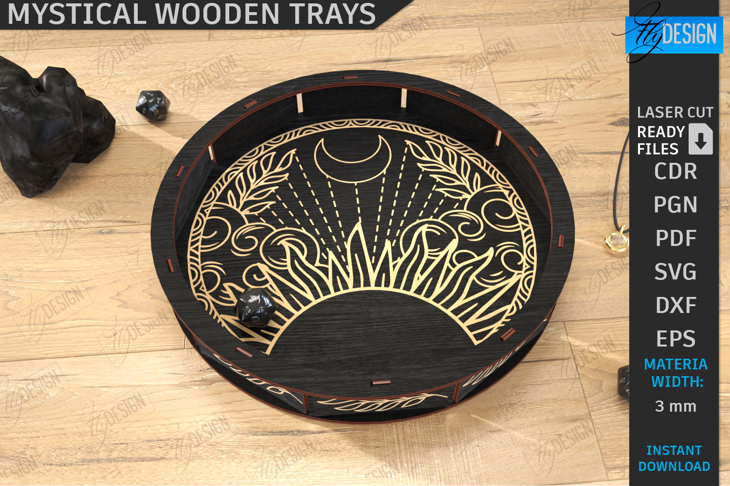 Mystical Wooden Tray Laser Cut | Celestial Dice Tray | Mystical Symbol | Serving Tray Design | Home Décor | Laser Engraving | Organizer | Moon | Sun | CNC File