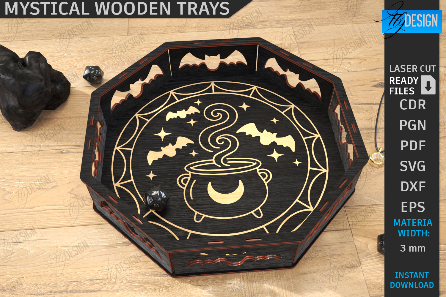 Mystical Wooden Tray Laser Cut | Celestial Dice Tray | Mystical Symbol | Serving Tray Design | Home Décor | Laser Engraving | Organizer | Potion | Halloween | CNC File