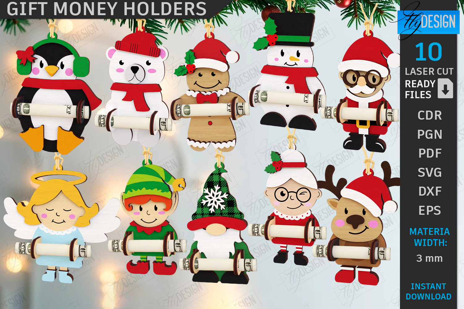 Christmas Characters Gift Money Holders Laser Cut Bundle | Christmas Ornaments | Christmas Tree Toys | Christmas Decorations | Holidays SVG | Hanging Tree Toys | Happy New Year | Laser Silhouette | Christmas Signs | Santa’s Hat | Christmas Gift Idea | Gingerbread SVG | CNC Files