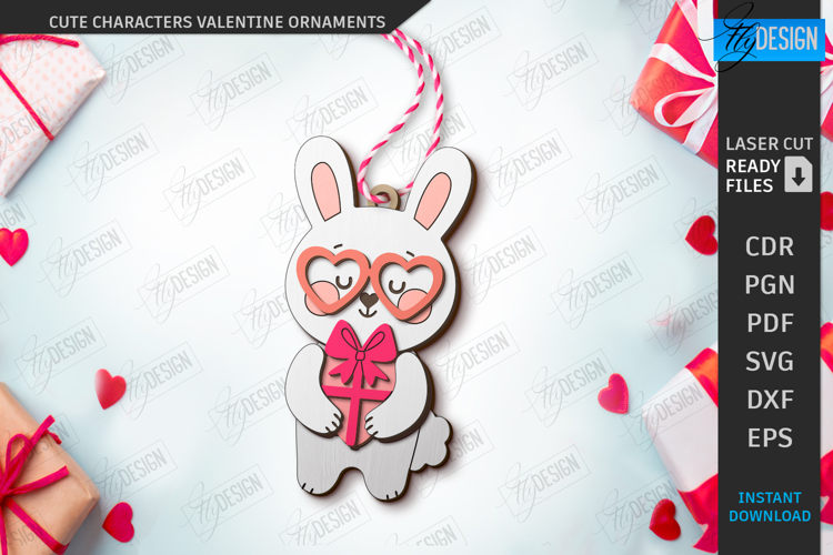 Valentine Ornament Laser Cut | Cute Animals SVG | Valentine’s Day Greeting Card | Romantic Gift | Valentine Laser | Happy Valentine’s Day | Cute Design | Love Day | Glowforge File | Holidays Gift | Valentine’s Gift Idea | Bunny SVG | CNC File