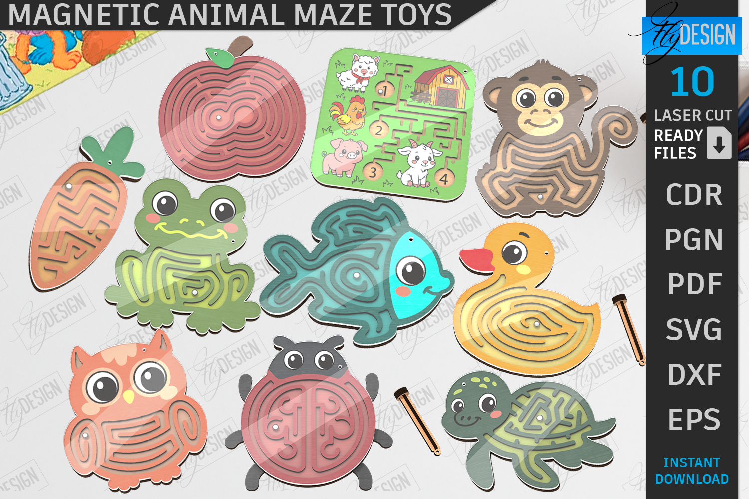 Magnetic Maze Game Laser Cut Bundle | Handheld Maze Games | Animals Design SVG | Wooden Labyrinth Toys | Montessori Toys | Coordination Games | Neuroimages | Kids Designs | CNC Files