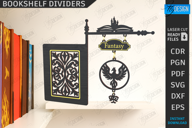 Bookshelf Divider Laser Cut | Library Shelf Dividers | Home Décor | Dividers Bookshelves | Home Library Dividers | Miniature Tavern Signs | Home Library Sign SVG | Vintage Design | Fantasy SVG | CNC File
