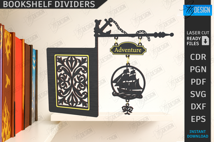 Bookshelf Divider Laser Cut | Library Shelf Dividers | Home Décor | Dividers Bookshelves | Home Library Dividers | Miniature Tavern Signs | Home Library Sign SVG | Vintage Design | Adventure SVG | CNC File