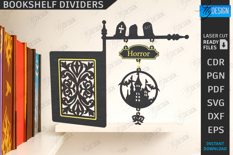 Bookshelf Divider Laser Cut | Library Shelf Dividers | Home Décor | Dividers Bookshelves | Home Library Dividers | Miniature Tavern Signs | Home Library Sign SVG | Vintage Design | Horror SVG | CNC File
