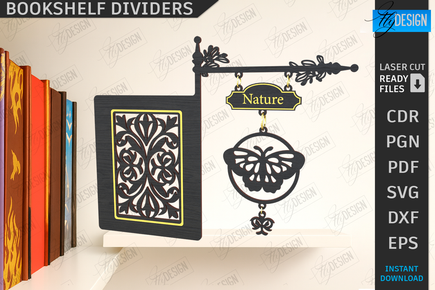 Bookshelf Divider Laser Cut | Library Shelf Dividers | Home Décor | Dividers Bookshelves | Home Library Dividers | Miniature Tavern Signs | Home Library Sign SVG | Vintage Design | Nature SVG | CNC File