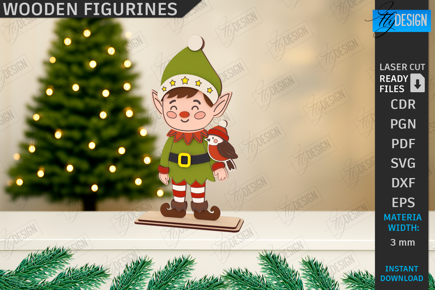 Christmas Wooden Figurines Laser Cut | Christmas Shelf Sitter | Merry Christmas | Christmas Character | Layered Design | Holiday Decorations | Christmas Present | Gift Idea | Table Statuette | Christmas Décor | Elf SVG | CNC File
