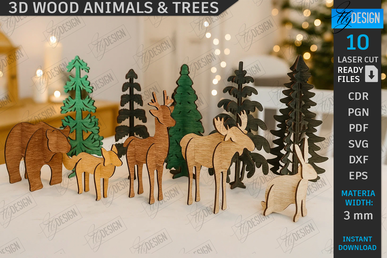 3D Table Décor Laser Cut Bundle | Wooden Puzzles | Desktop Decorations | Home Décor | Forest SVG | Forest Animals | Christmas Laser | Blanks for Creativity | CNC Files