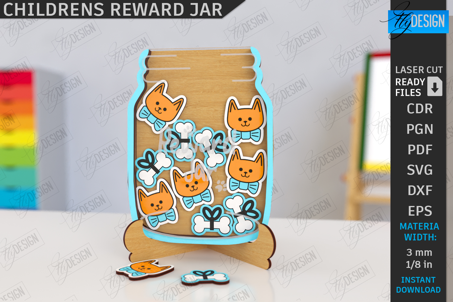 Children’s Reward Jar Laser Cut | Classroom Reward Jar | Good Behavior Jar | Kindness Jar | Kids Laser | Personalized Designs | Cats SVG | CNC File