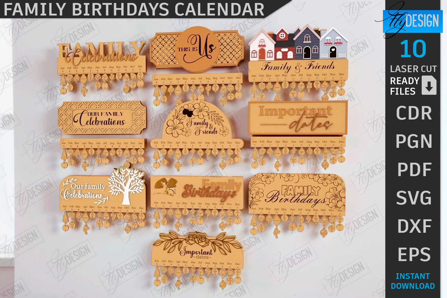 Family Birthday Calendar Laser Cut Bundle|Perpetual Calendar