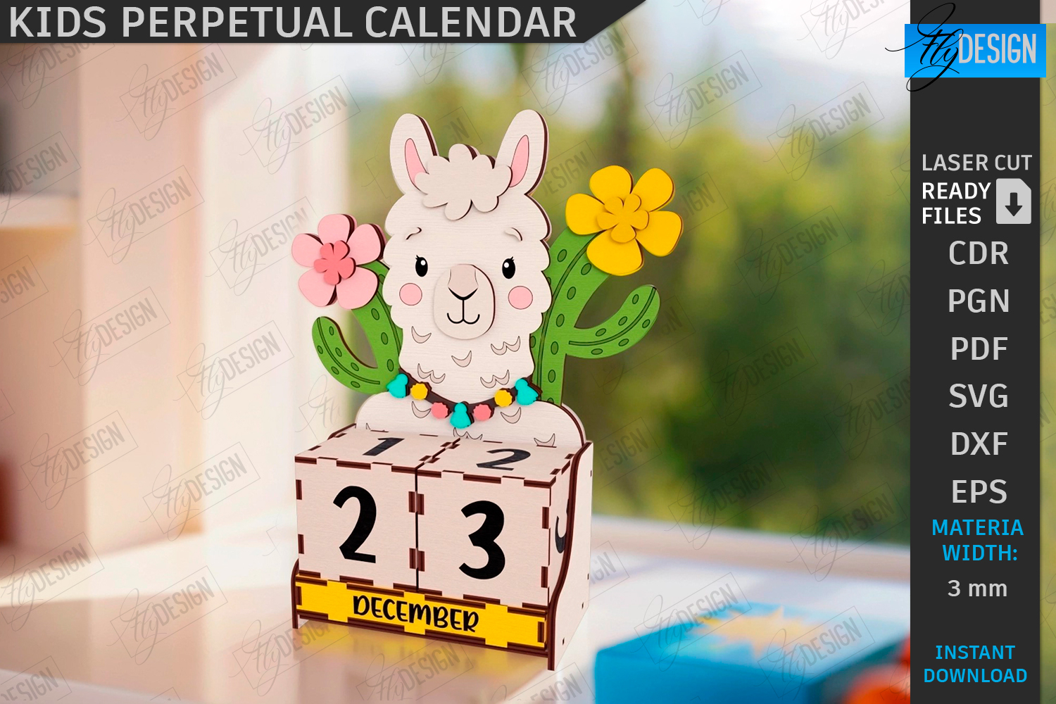 Kids Block Calendar Laser Cut | Child Room Décor | Kids Design | Calendar with Blocks | Two Number Blocks | Calendar with Cubes | Desktop Calendar | Lama SVG | CNC File