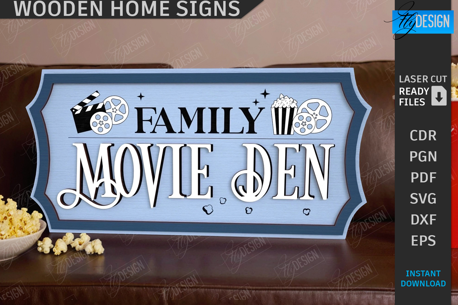 Wooden Home Signs Laser Cut | Family Wall Sign | Home Decorations | Retro Signs | Wall Decor | Home Décor | 3D Laser | Family Design | Family Movie Den | CNC File