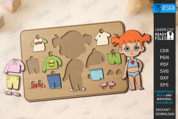 Dress Up Doll Puzzle Laser Cut|Digital Dress Puzzle|Game SVG